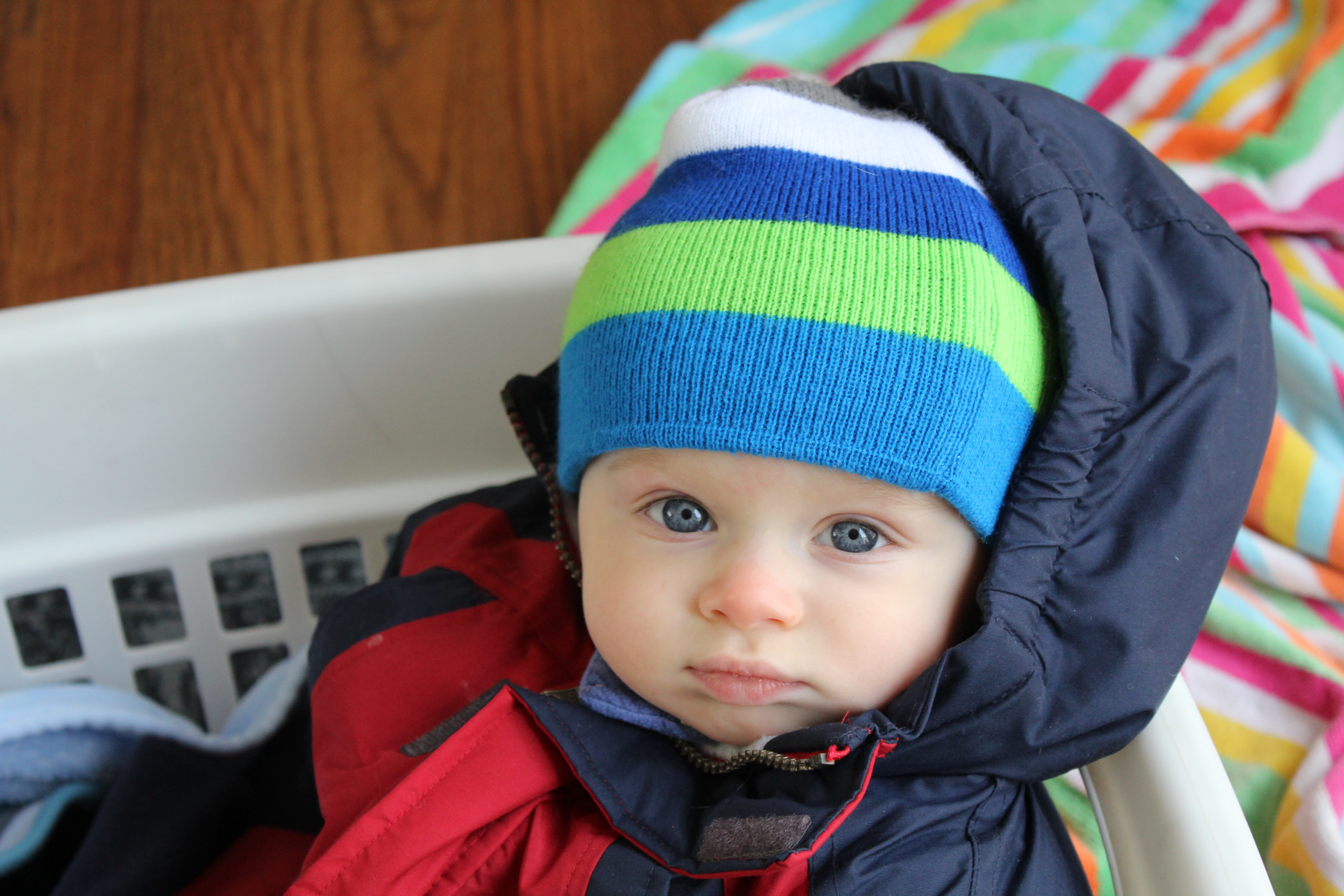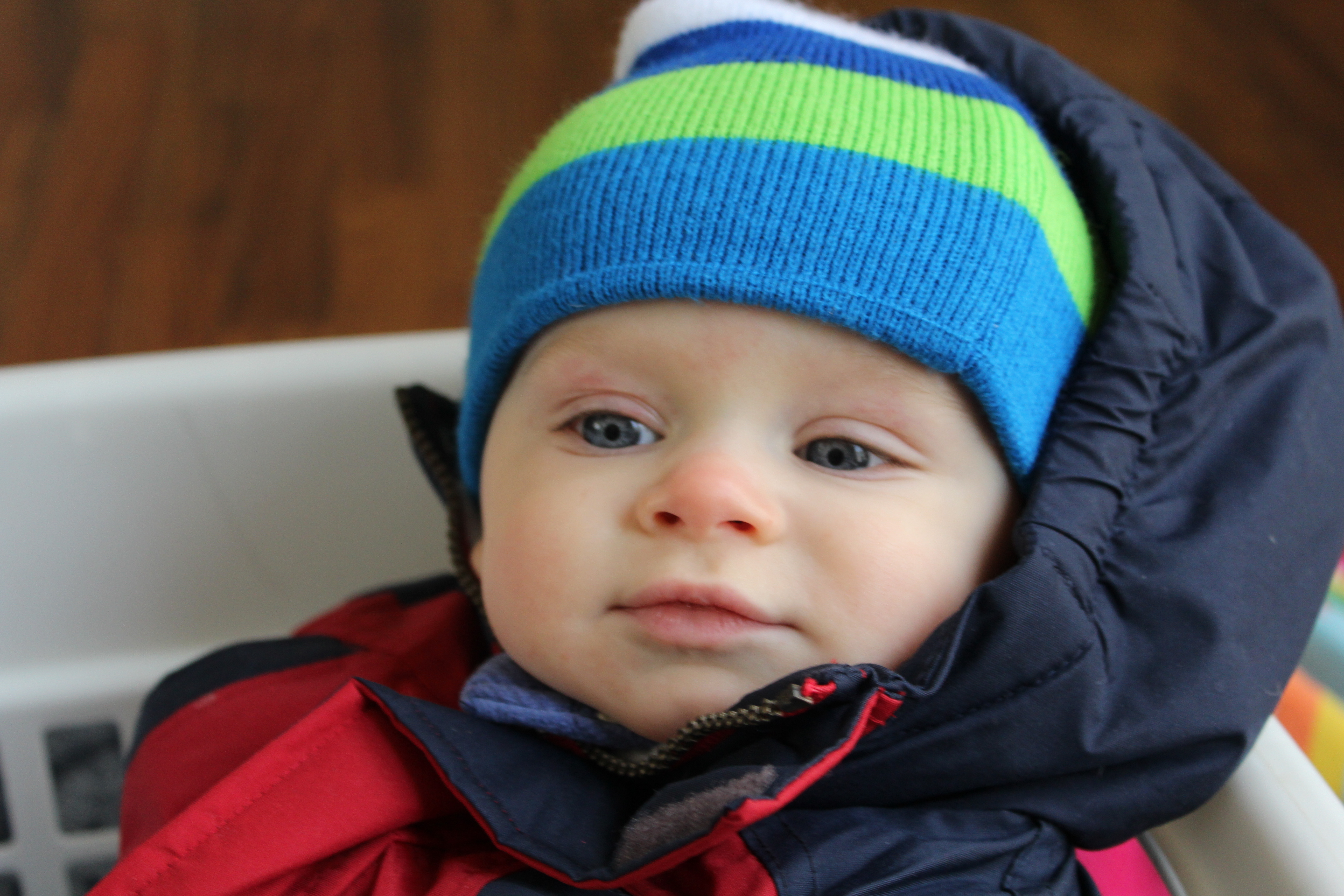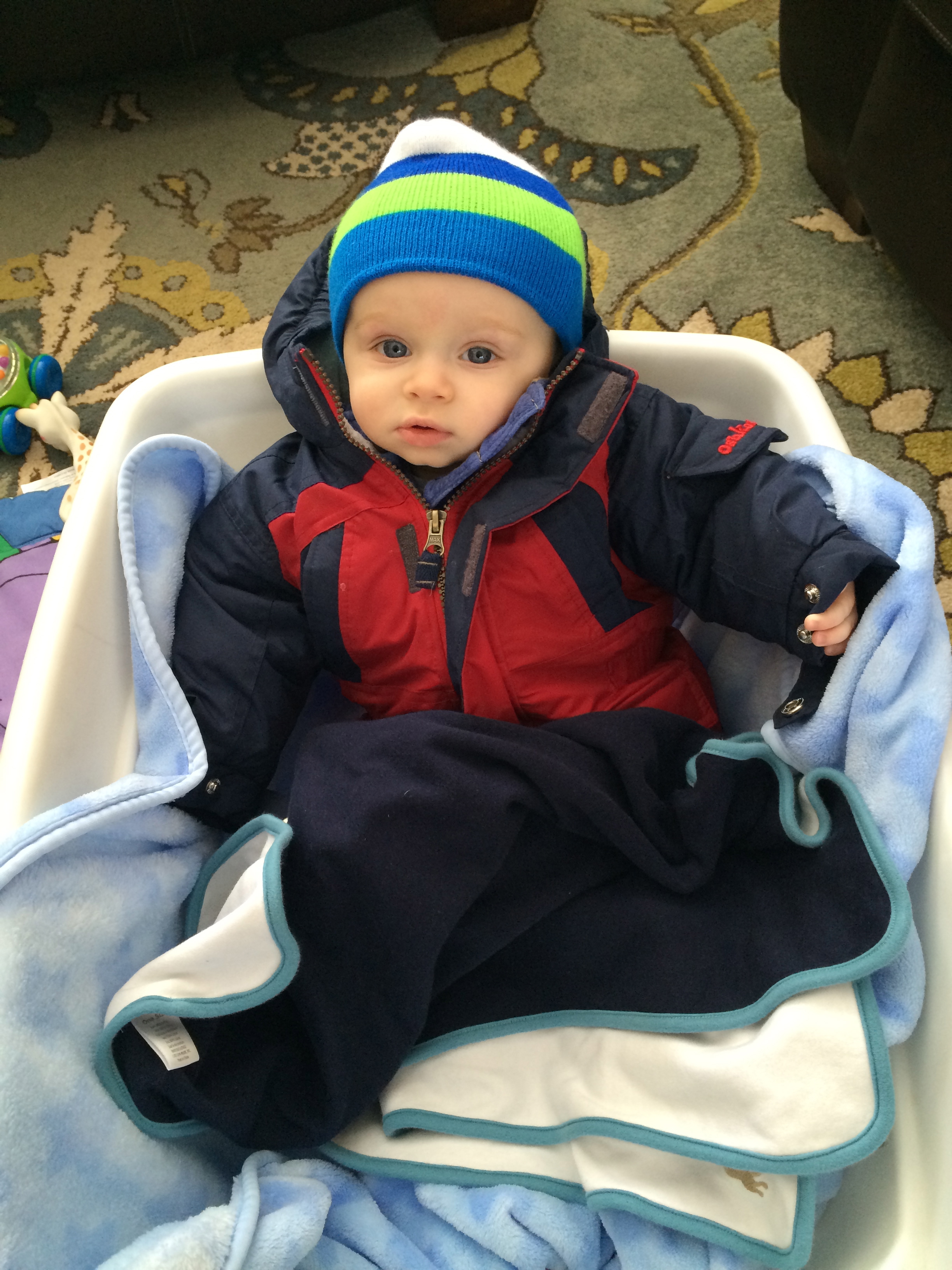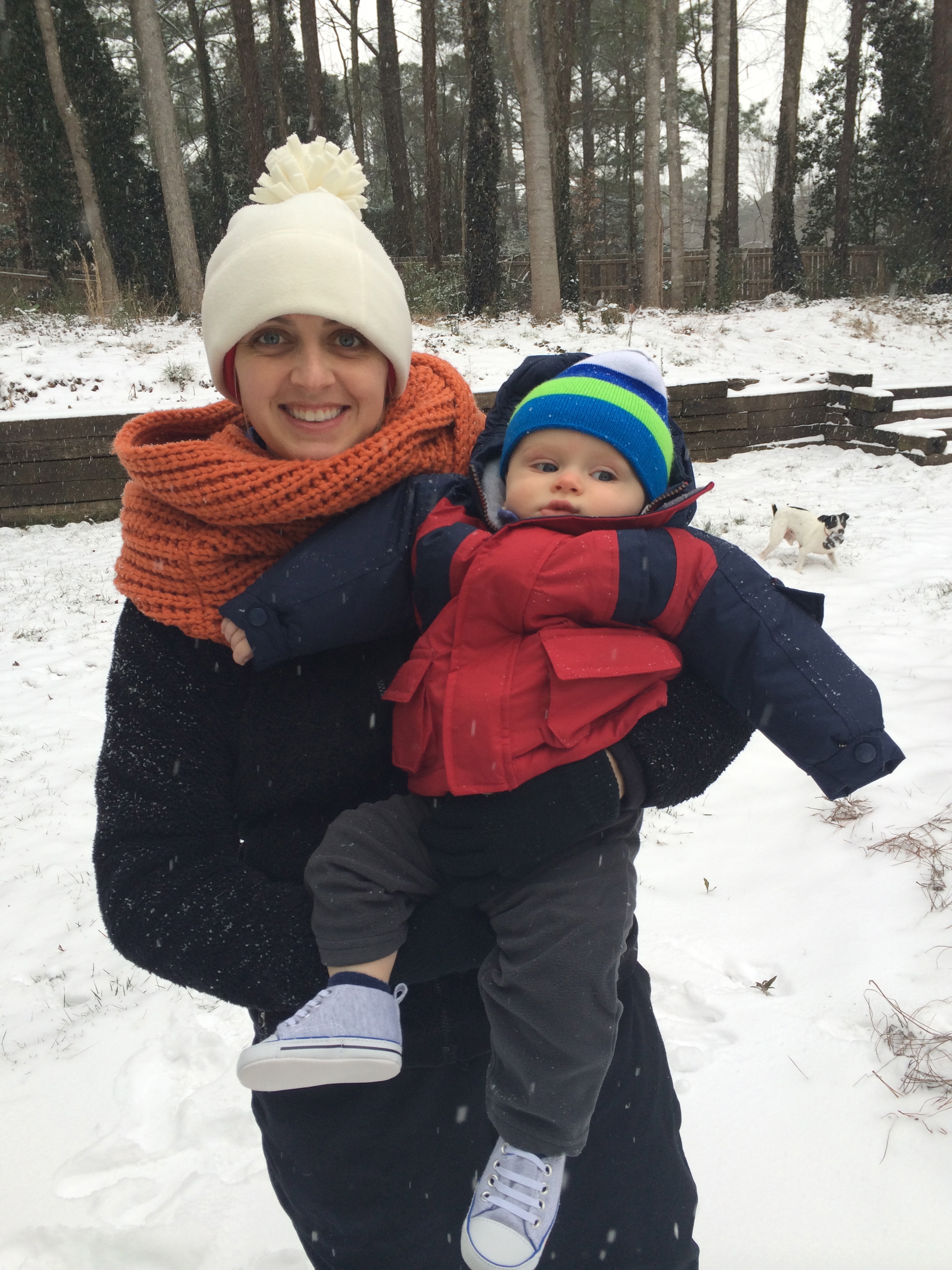 Snow is an every 2 or 3 year event here in Atlanta, so I was very excited that Hudson got to experience it in his first year of life! . He usually does not like to wear layers, however he didn’t seem to really mind this time.  I think he knew how cold it was.  He really loved watching the snow fall, from inside.  Once we got outside in it, I’m not so sure he loved it, but it was fun for his dad and I so it was all worth it!